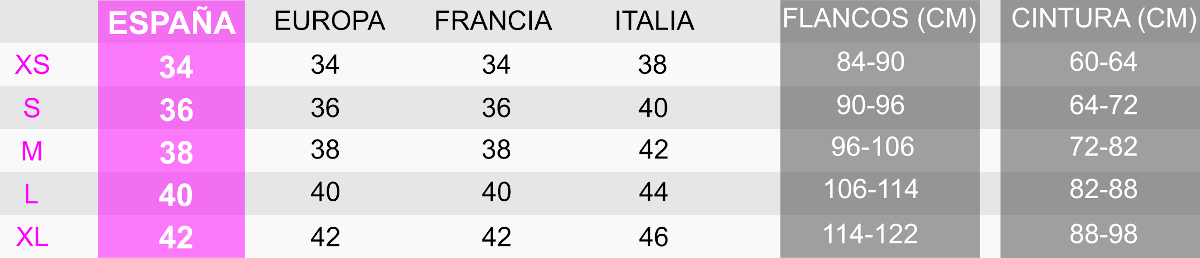 Dado que debido al tipo de tejido elástico utilizado, algunas prendas pueden tener algunas diferencias en la talla elegida.