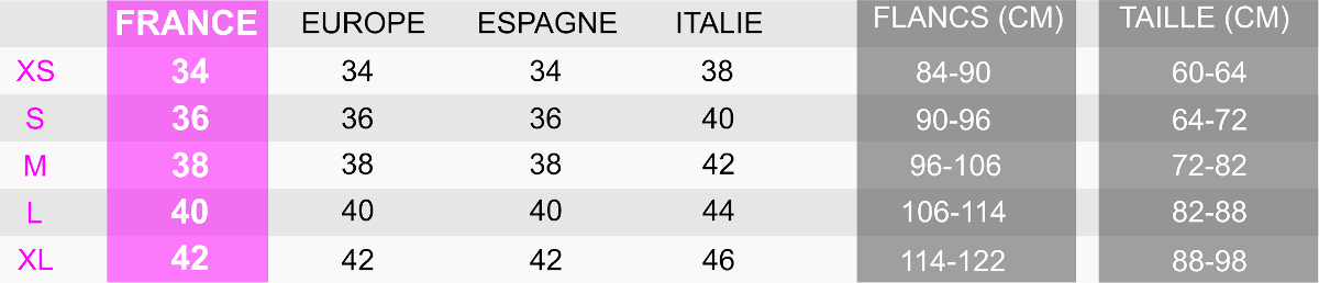 Étant donné qu’en raison du type de tissu extensible utilisé, certains articles peuvent présenter des différences sur la taille choisie.